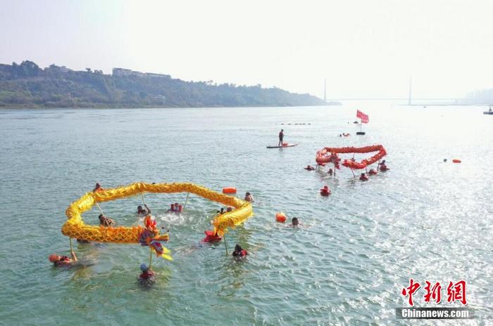 四川宜宾水中舞龙庆元宵佳节