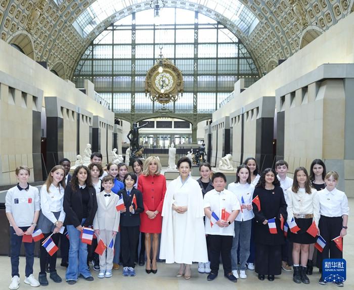 彭丽媛同匈牙利总理欧尔班夫人雷沃伊参观匈中双语学校